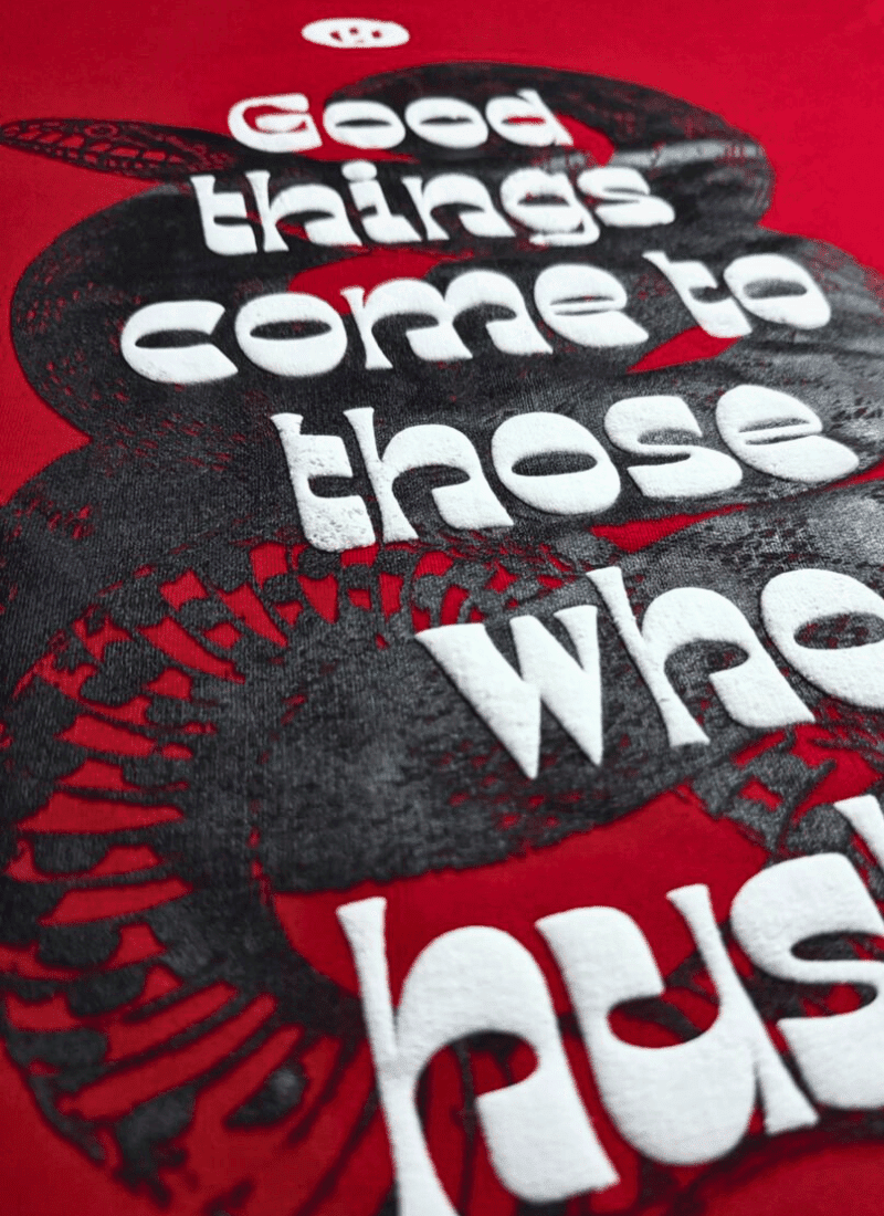 Red Grind & Shine Oversized Tee brings a high-end edge to everyday street style. Cut in a relaxed, drop-shoulder fit with rich red fabric, it delivers a premium look and feel. The bold “Grind & Shine” graphic adds a luxury streetwear attitude, perfect for pairing with statement bottoms and sleek sneakers.